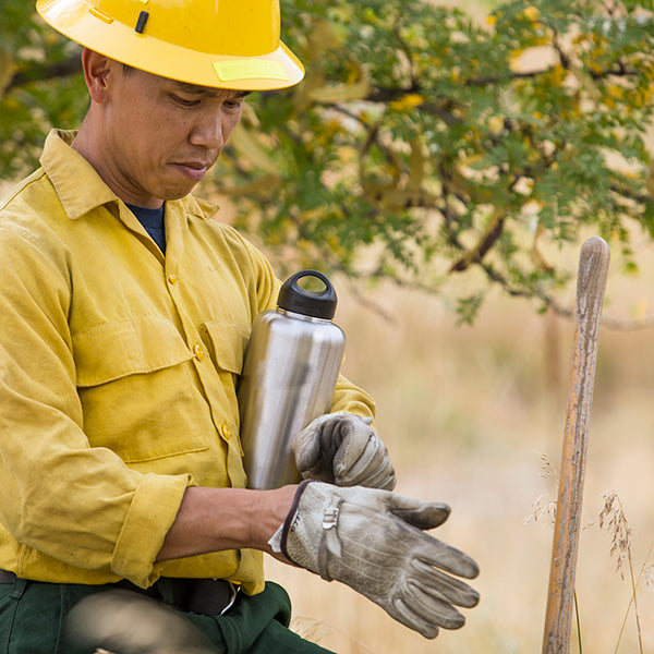 Our 64oz water bottle is a huge. half gallon stainless steel bottle for transporting and storing water and other beverages. A favorite for backpackers and outdoor lovers due to its large size. lightweight non-insulated. single-wallconstruction and wide mouth. The wide mouth 64oz bottle fits most backcountry water filters for clean and safe water anywhere. Loop Cap has a stainless steel interior so your favorite beverage never touches plastic. NOTE: Black color comes with fixed loop cap. Brushed comes with loop cap with steel bale. Need an insulated water bottle?